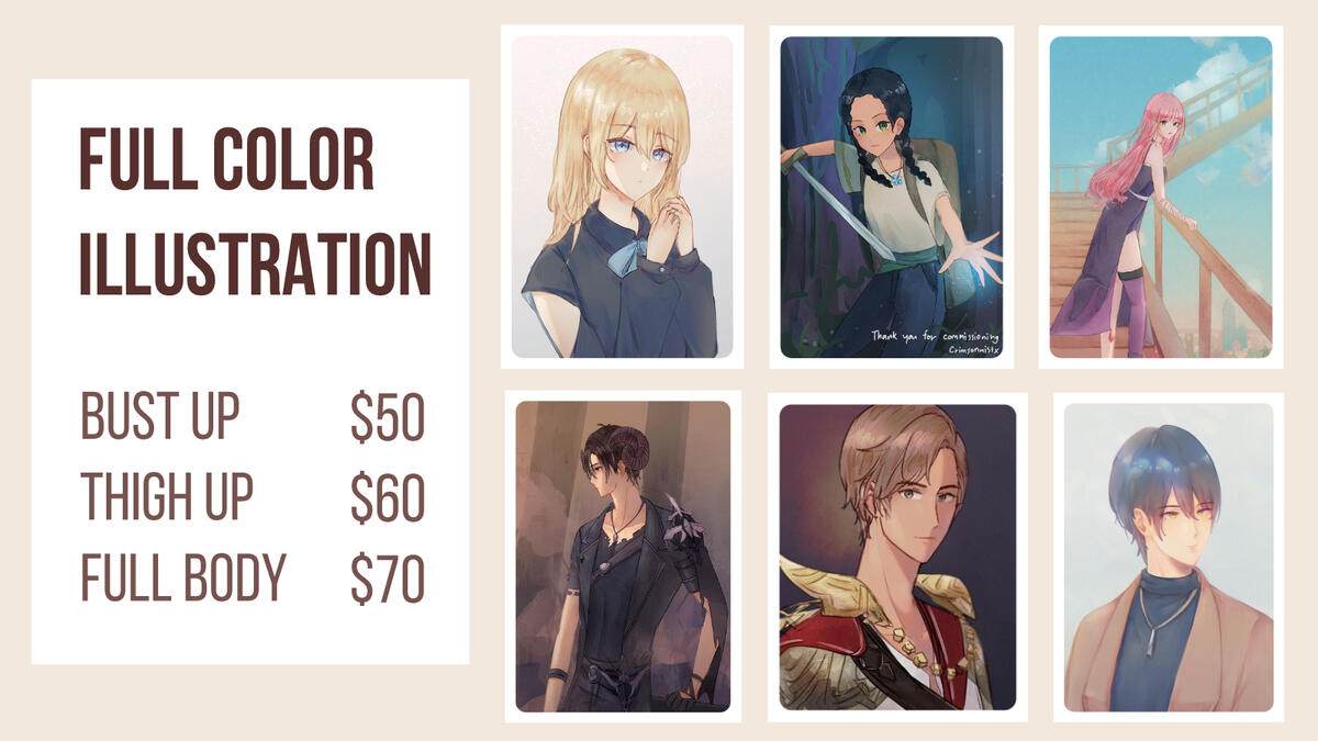 Hello! Crimson here. I'm an oc artist who loves drawing subtle expression and adding texture to my artwork. Feel free to ask if you have any questions. I look forward to working with you.